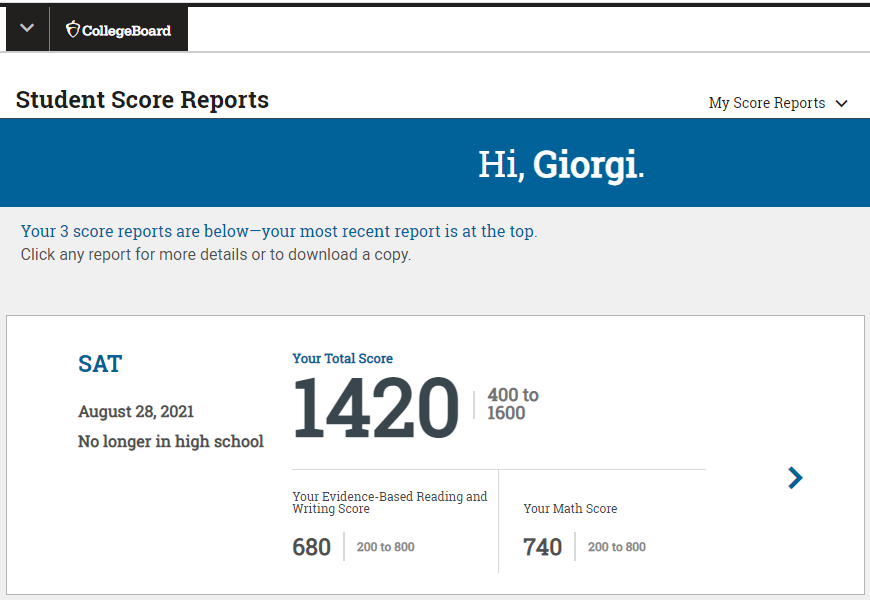 SAT 1420 (Evidence-Based Reading and Writing: 680 | Math: 740)